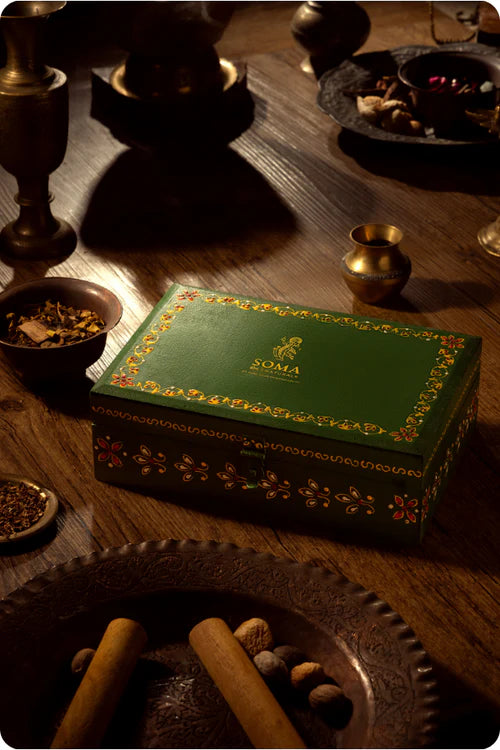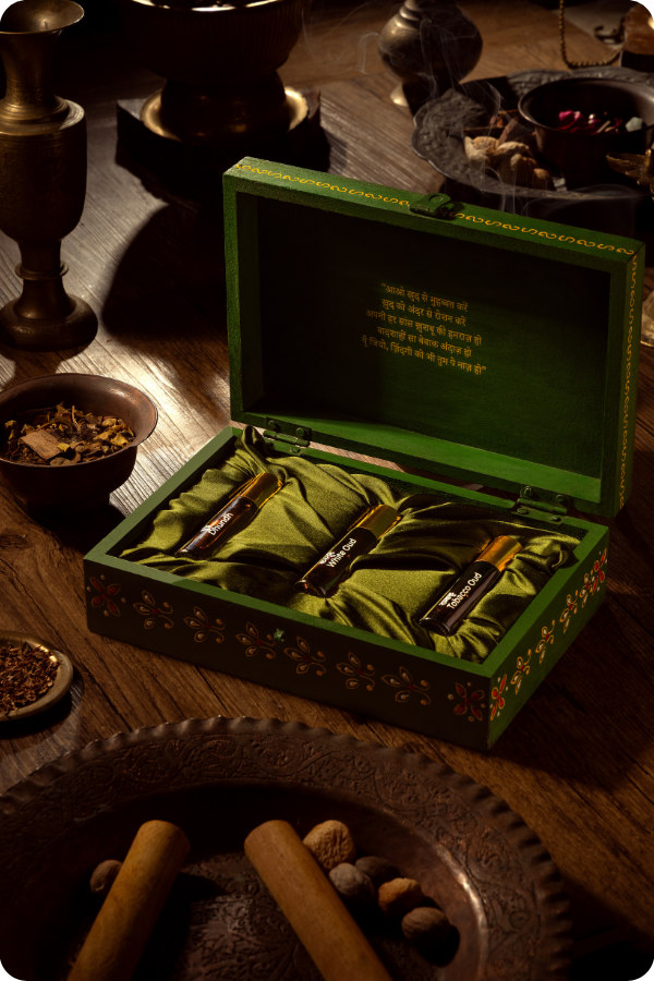 A luxury collection of timeless fragrances crafted with the spirit of royalty. This treasure chest brings together aromatic blends that are calming, uplifting, and restorative, reminiscent of the indulgences once savoured by kings and queens. Reimagined with elegance, it elevates your daily fragrance ritual with sophistication and heritage.