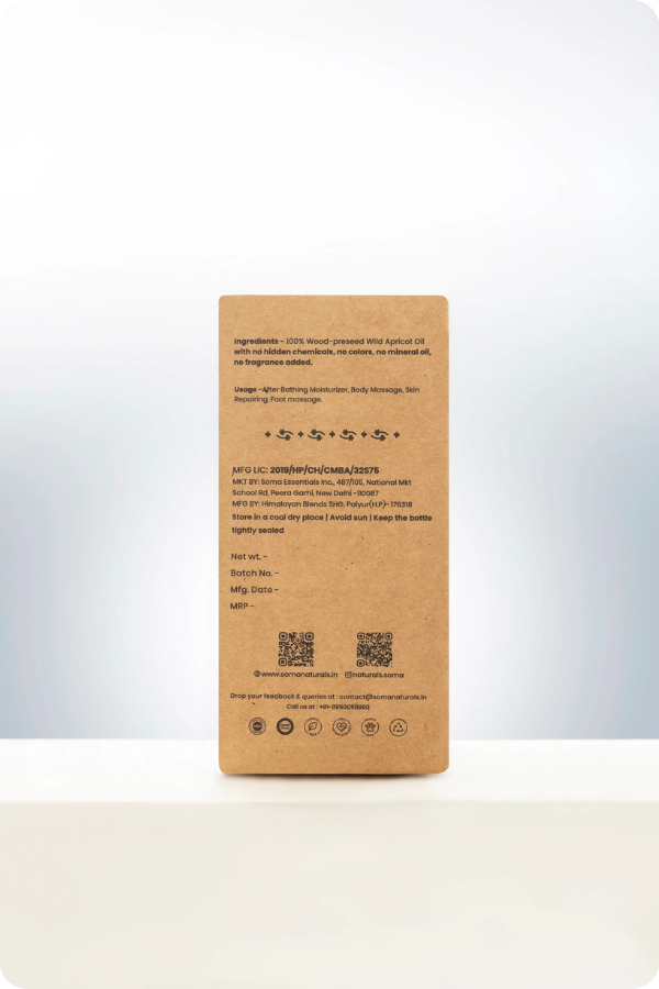 An pure Ayurvedic oil crafted from hand-picked Khubani kernels, cold-pressed through the Lakdi ka Kolhu method to preserve maximum nutrients. Rich in potent antioxidants, it helps combat ageing, reduces fine lines, and fades stretch marks. With its natural purity, this elixir balances Vata and Kapha doshas, deeply nourishing skin while promoting inner wellness.