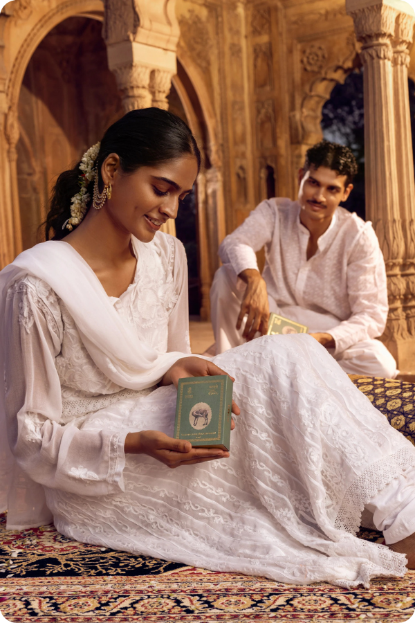 An aroma that opens with vibrant bergamot and delicate white jasmine, unfolding into the rich, resinous warmth of pure white oud, and settling on a sophisticated base of amber, musk, and vetiver. This luxurious oil-based fragrance exudes elegance, mystique, and timeless allure.